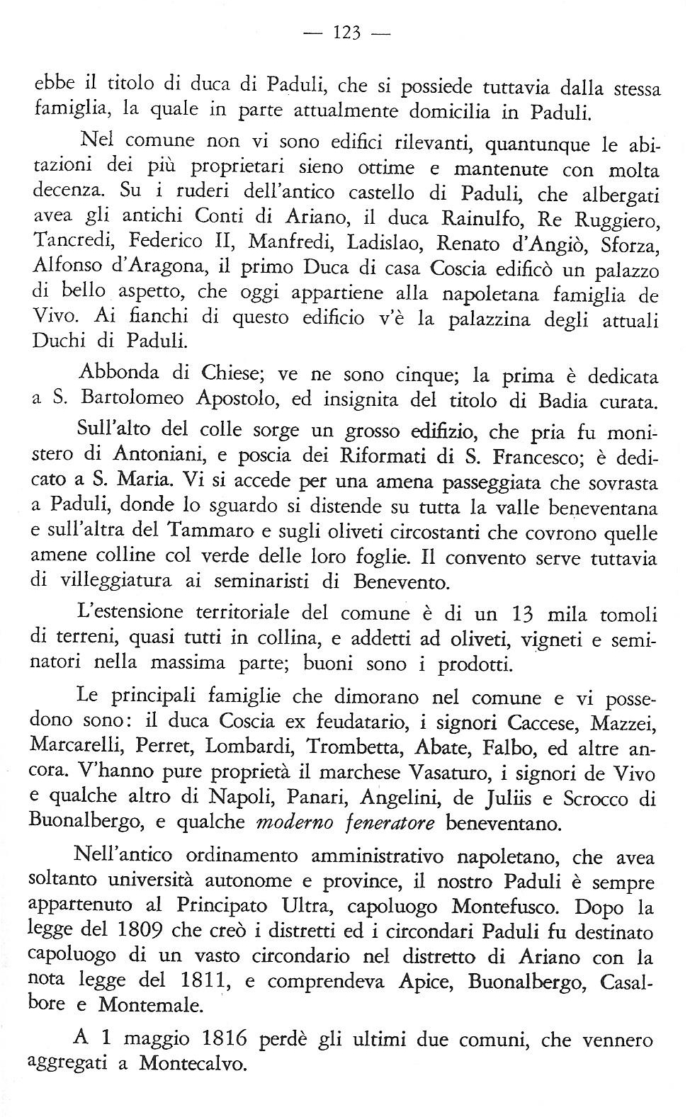 Nel Blogpost Numero 1 ho pubblicato una traduzione parziale e selezionata in inglese del capitolo riguardo Paduli nel libro scritto di Alfonso Meomartini, autore e giornalista, di titolo I Comuni della Provincia di Benevento: Storia – Cronaca – Illustrazioni pubblicato nel 1907 ed ancora nel 1970 in celebrazione del centenario del opera. Qui vorrei presentarvi il testo originale in italiano perche’ il libro stesso e’ difficile trovare.